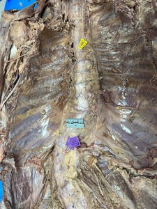 Other non-bony abnormalities but interesting and important findings in this TARS cadaveric case were cardiac and genitourinary anomalies, including a left sided brachiocephalic trunk (See Figure 7), a smaller right common carotid artery compared to the left (See Figure 8), a right sided aortic arch (See Figure 9), apparent status-post surgical repair of Tetralogy of Fallot, and polycystic horseshoe kidney (an extremely rare, combined finding with about 20 documented cases in the literature) (See Figure 10), and other findings: hepatosplenomegaly, subhepatic cecum (See Figure 11), a small rectosigmoid polyp, hemorrhage and necrosis of the right substantia nigra and cerebral peduncle, and hemorrhage of right basis pontis and medulla. The hemorrhages in the brainstem were most likely a complication of the thrombocytopenia associated with this syndrome. Intracranial hemorrhages are a major cause of mortality in TARS. Also, there was torsion of the right uterine tube with a calcified adnexal mass (fibrous tumor).