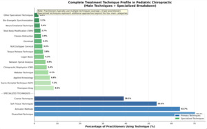 The high utilization of multiple techniques (average 2.8 techniques per practitioner) suggests that pediatric chiropractic practice requires diverse clinical skills and adaptability to different patient presentations and ages. This finding supports the importance of comprehensive pediatric training, particularly within undergraduate chiropractic programs, that address multiple care approaches.32
